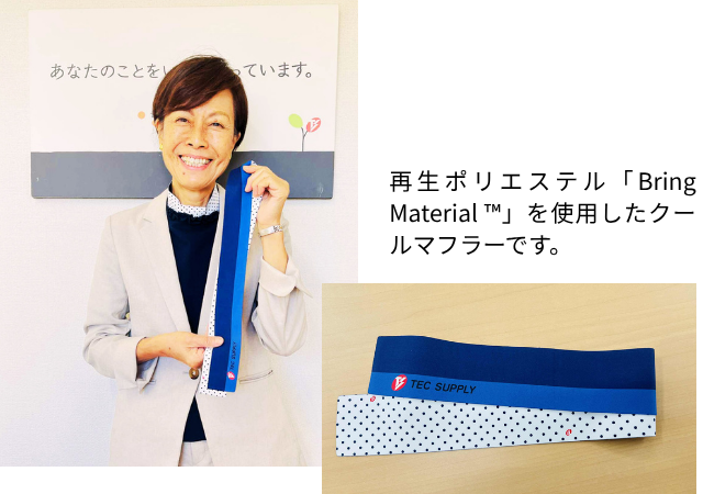 このクールマフラーは、株式会社JEPLAN様が開発した、再生ポリエステル「Bring Materil™」が25%含まれています。