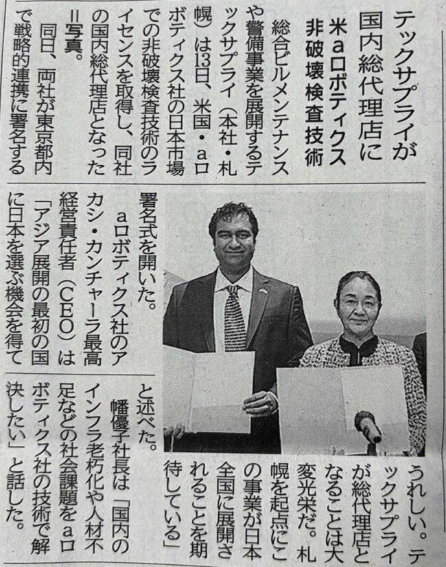 テックサプライは、aRobotics社の日本市場での非破壊検査技術のライセンスを取得し、国内総代理店となりました。